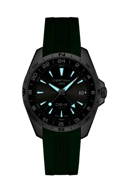 ה-Certina DS-X GMT C047.452.11.081.00 הוא דגם מקולקציה המיועדת לענודדים המעריכים פונקציונליות ועצמאות. מעטפת הנירוסטה מצוידת במסגרת מסתובבת עם סימני כיוון עולמיים - אלמנט אופייני לכל סדרת ה-DS-X. החוגה כוללת מצביע GMT נוסף לקריאת השעה באזור השני. מנגנון ETA F06.865 עם טכנולוגיית HeavyDrive™ מספק עמידות משופרת בפני זעזועים, בעוד שציפוי Super-LumiNova® דואג לקריאות בתנאי תאורה חלשים. זכוכית ספיר עם ציפוי אנטי-רפלקטיבי ועמידות למים עד 200 מטר הופכות שעון זה לפרקטי גם לשימוש במים.