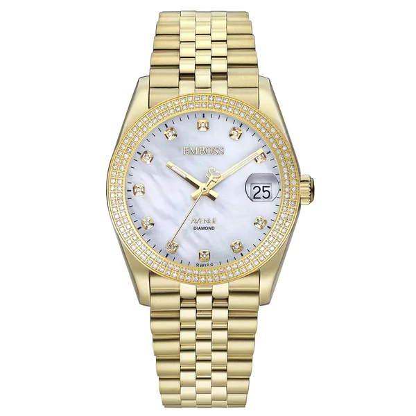 EYAVFAYGWMY171 שעון EMBOSS לאישה AVENUE יהלומים לוח+באזל