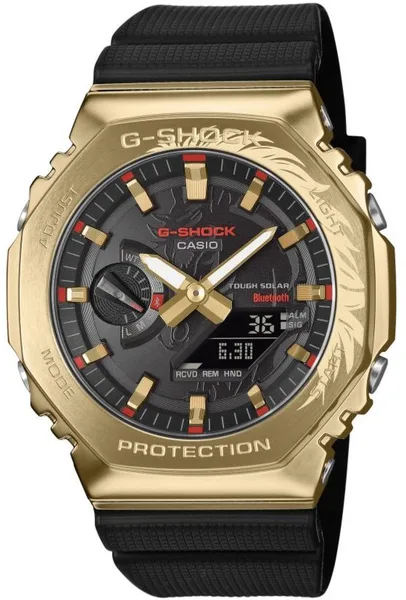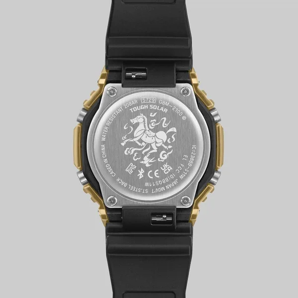 סוס הרואי וחסר פחד חולף על פני חוגת השעון, חריטה של רעמת הסוס נשפכת אל מסגרת שעון יפהפייה מצופה בצבע זהב. התוצאה היא עיצוב דינמי המעורר תנועה. סימני השעון בצבע זהב מסמלים את הברכה וההדר של השנה החדשה, עם קצה אדום עז המעורר את כוחו הקשוח של סוס אלף הלי. איורים של הסוס המיתולוגי על גב השעון ועל האריזה המיוחדת משלימים את החגיגה הקלאסית הזו של שנת הסוס. בנוסף לעיצוב מיוחד ומהמם ה – GBM-2100CX-9ADR מגיע גם עם תכונות טכנולוגיות שימושיות ביותר כגון: קישוריות בלוטות׳ אלחוטית המאפשרת התממשקות עם אפליקציית CASIO WATCHES דרכה ניתן לשלוט ולנטר פעולות שונות של השעון דרך מכשירי אפל או אנדרואיד.