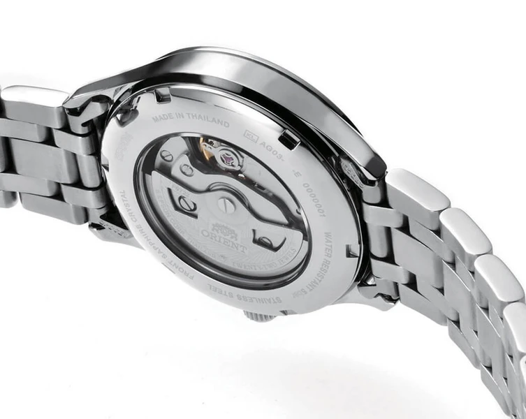 שעון יד עשוי פלדה אל-חלד (Stainless Steel) בעיצוב יוקרתי ייחודי של חברת Orient.