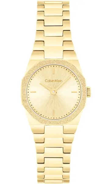 שעון יד קלווין קליין בעל מראה אלגנטי מעוצב בעיצוב ייחודי.