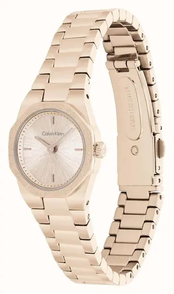 שעון יד קלווין קליין בעל מראה אלגנטי מעוצב בעיצוב ייחודי.