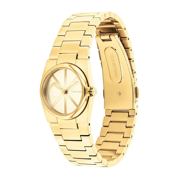 שעון יד קלווין קליין בעל מראה אלגנטי מעוצב בעיצוב ייחודי.
