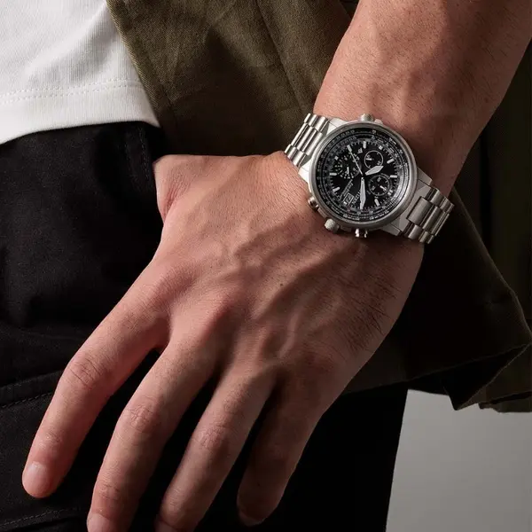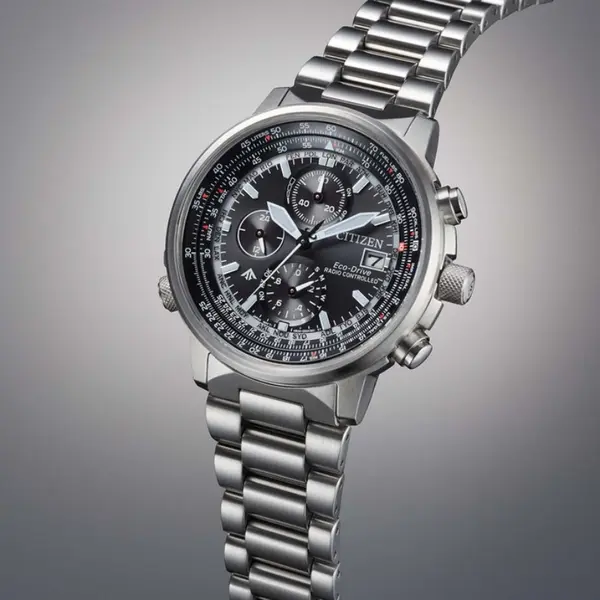 שעון טייסים אנלוגי מסדרת Promaster Sky המצויד בקליבר H800 ומנגנון Eco-Drive סולארי, המספק עתודת כוח ל-180 ימים.